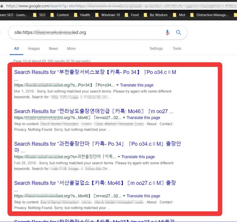 This website only had a few dozen pages, but the SERP was showing around 65,000 pages indexed in Google. All the junk indexed pages were Search Result Pages generated by the WordPress CMS.
